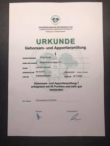 Birog's Hunting Happy Feet Mumble hat am 31.12.2017 die BGH 1 mit 93/100 Punkten und einem sehr guten 3. Platz bestanden - Gratuliere an Claudia und unseren Mubibubi!